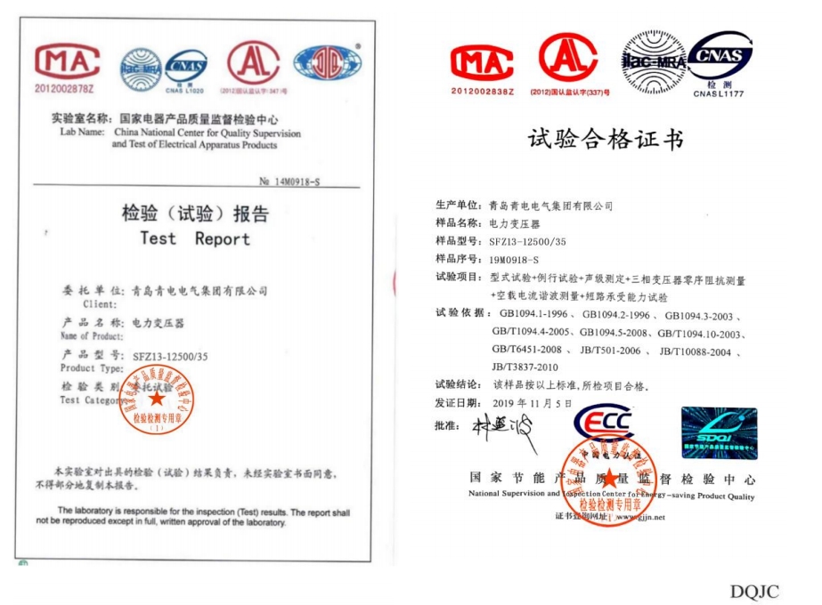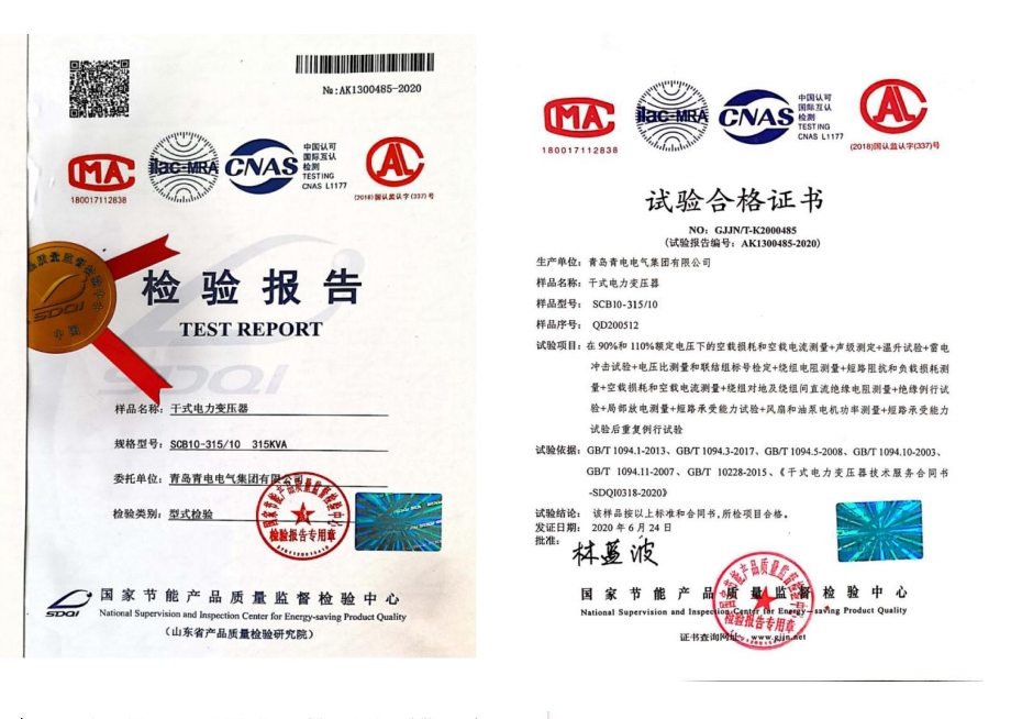 非晶合金干式電力變壓器檢驗(yàn)檢測(cè)報(bào)告