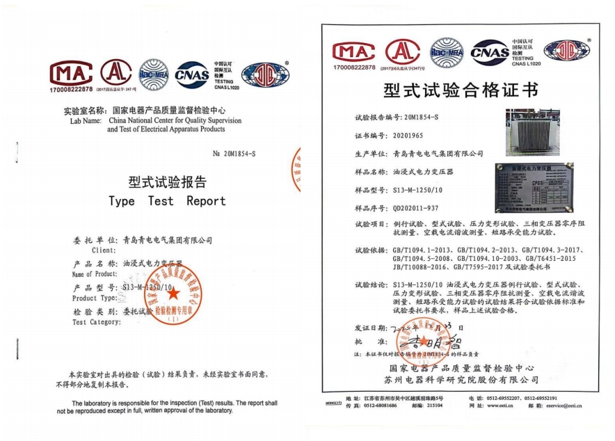 油浸式電力變壓器型式試驗(yàn)報(bào)告